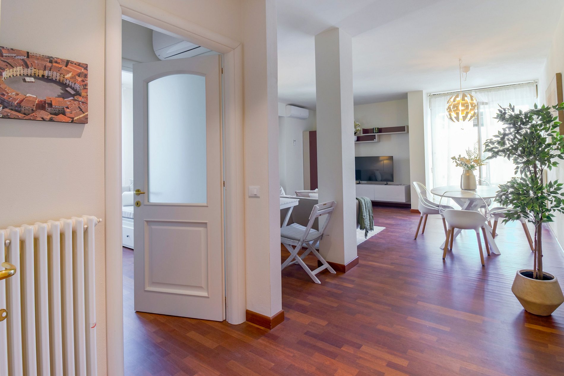 Situato in un edificio con ascensore e dotato di parcheggio privato, l'alloggio combina comfort, stile e praticità per un soggiorno perfetto a Lucca.